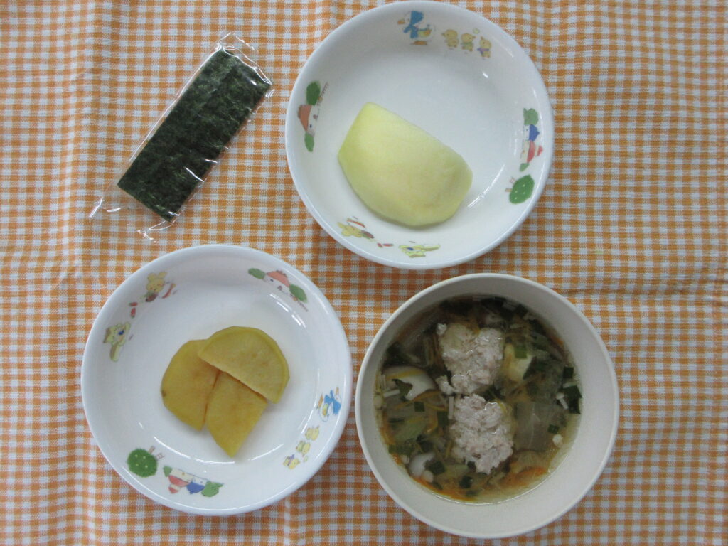 10月23日(木) 肉だんごのスープ煮 サツマイモの甘煮 焼きのり 果物