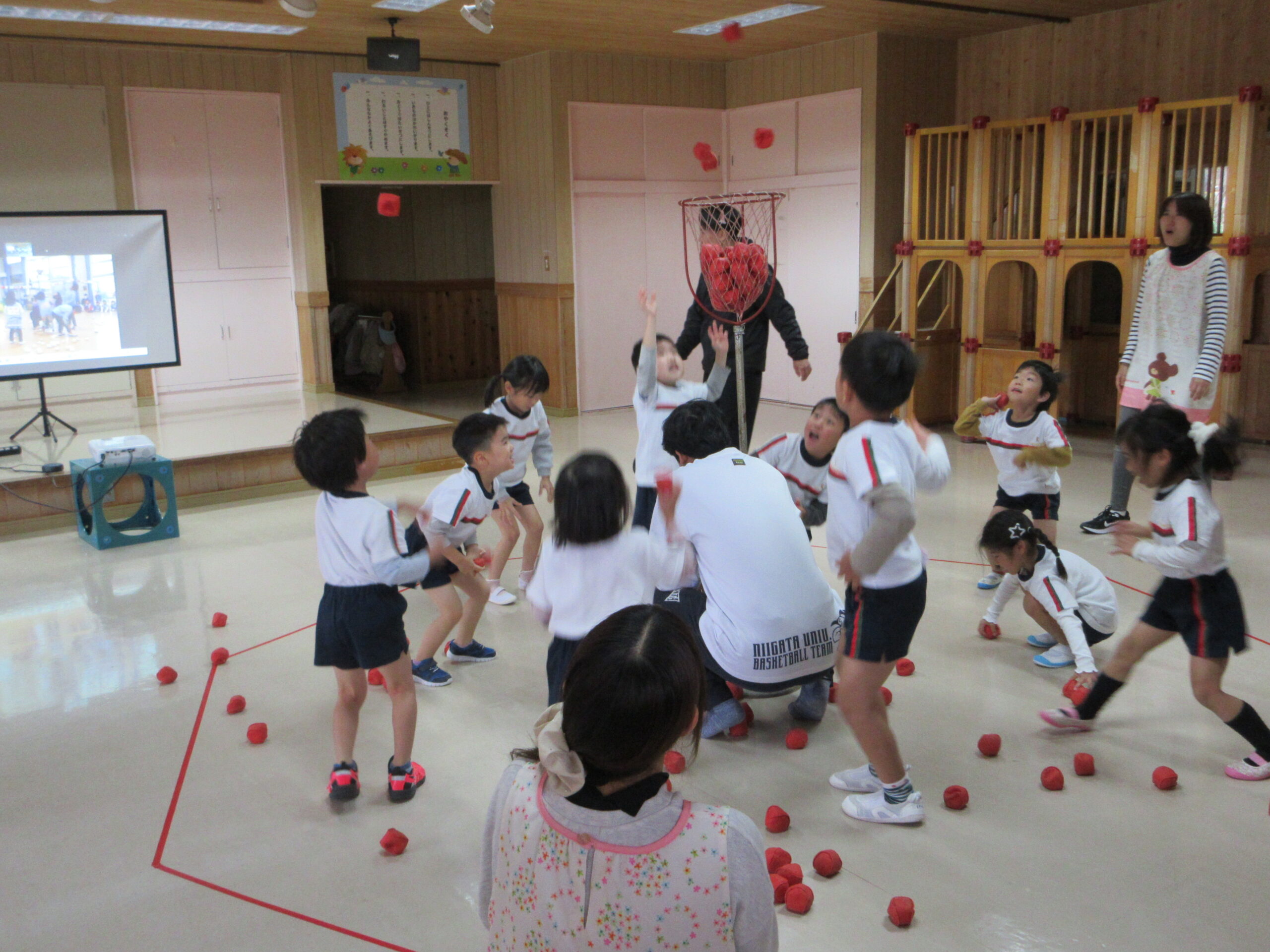 長岡市の新潟大学付属幼稚園のお友達と交流を深め、玉入れやコモン(探し物)ゲームを楽しみました(((*^◡^))