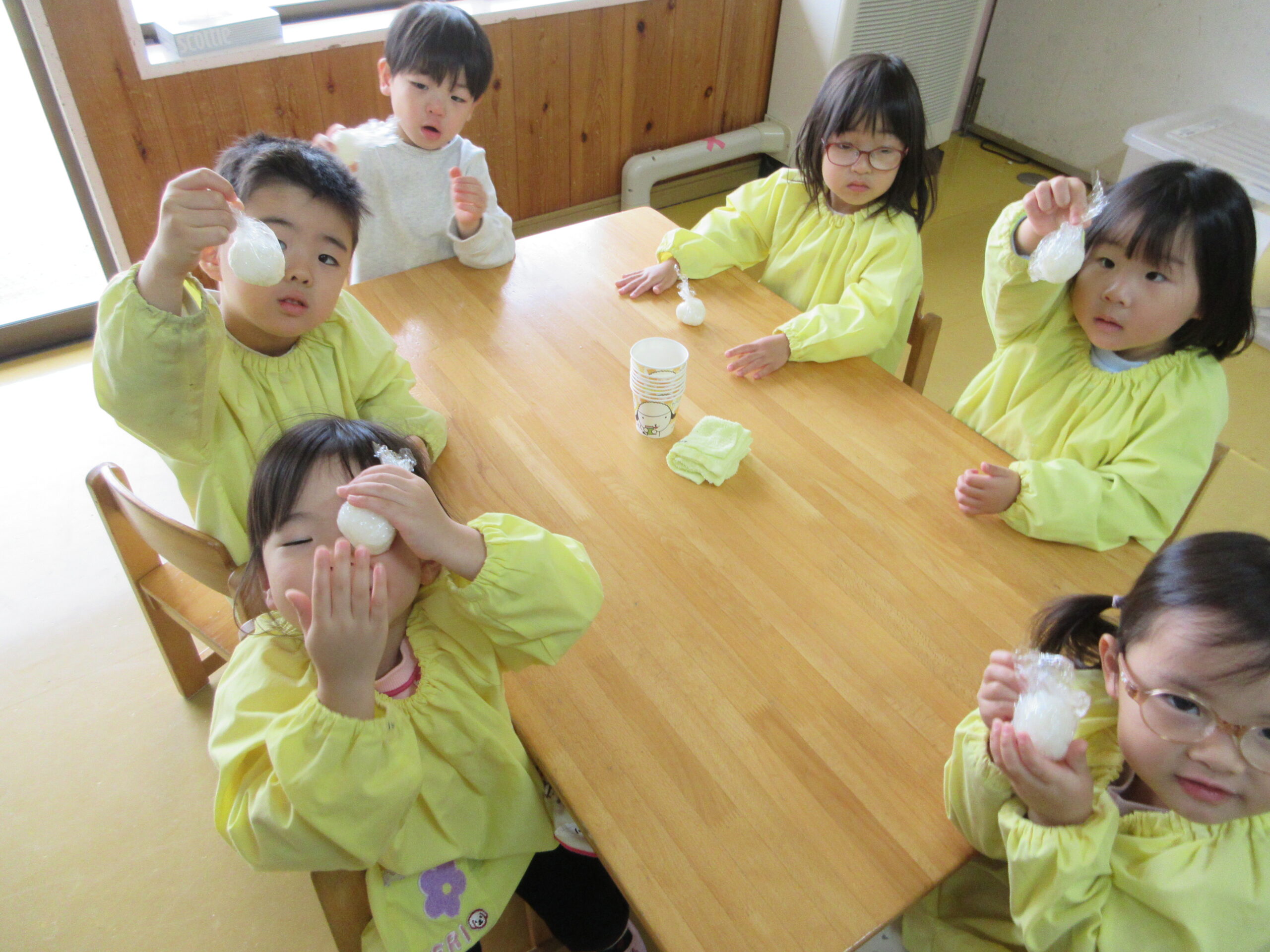 JA新潟中央会、にいがたおこめ応援隊さんの提供で“シャカシャカおにぎりづくり”を楽しみました♪