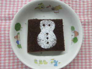 手作りの型紙で粉砂糖をふりかけ、雪だるまのガトーショコラを作りました*(〇^-^〇)✧**
