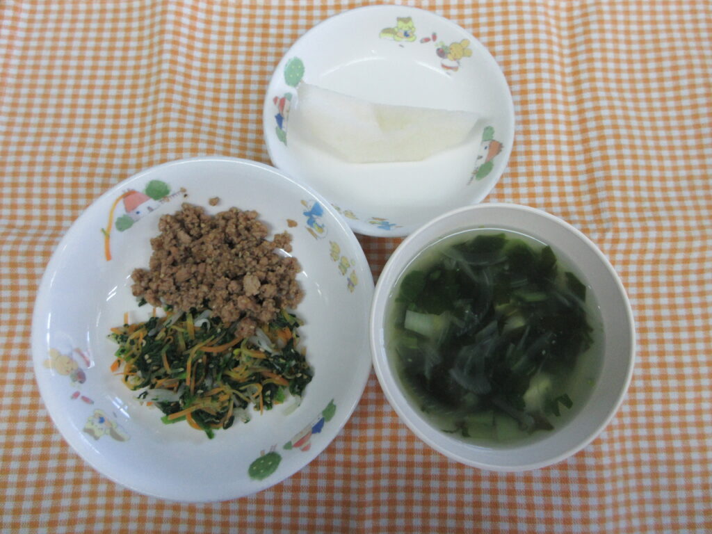 12月4日(木) ビビンバ チンゲン菜とわかめのスープ 果物