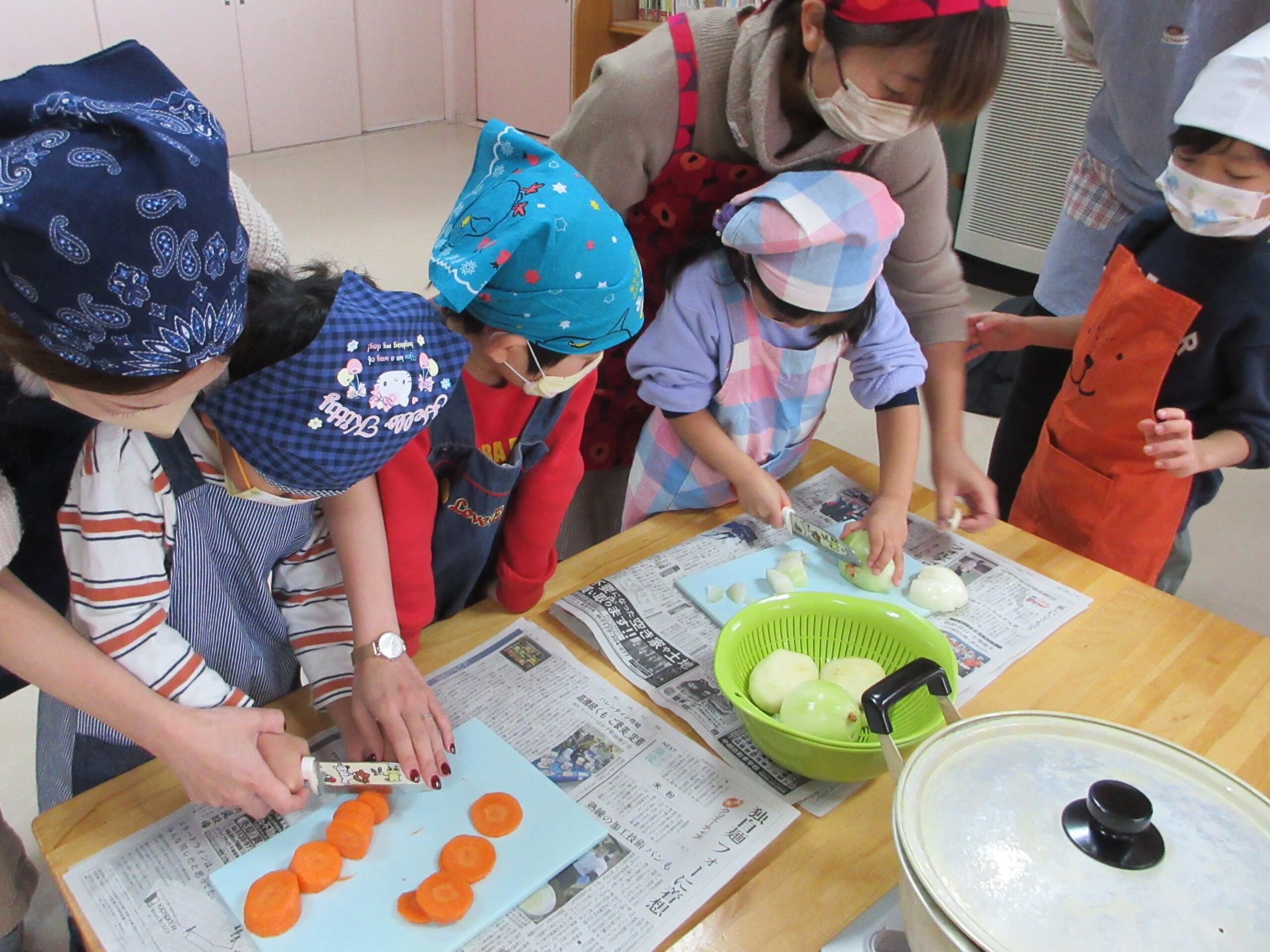 まつ・たけ組さんが親子でカレー作りを体験しました。