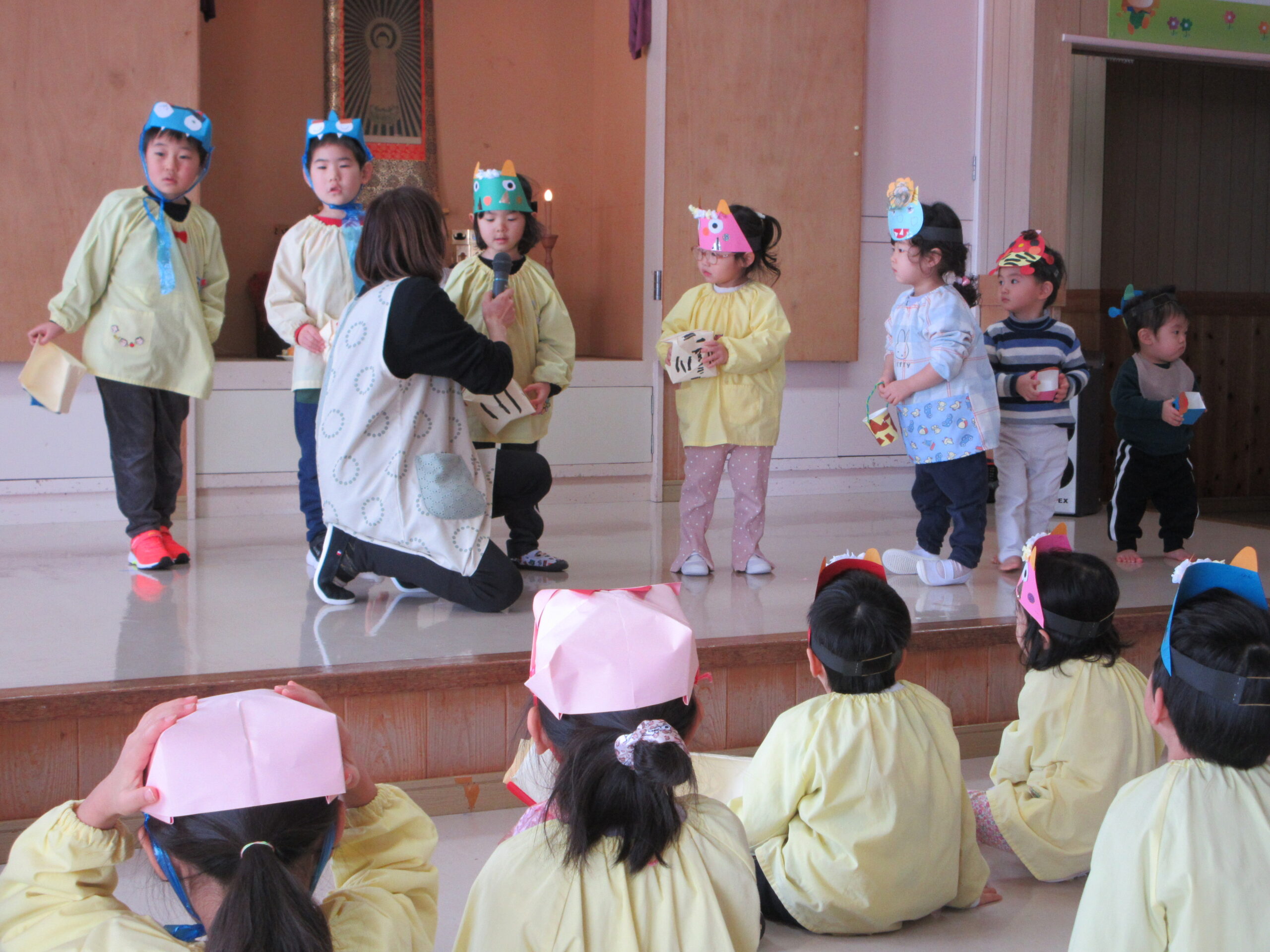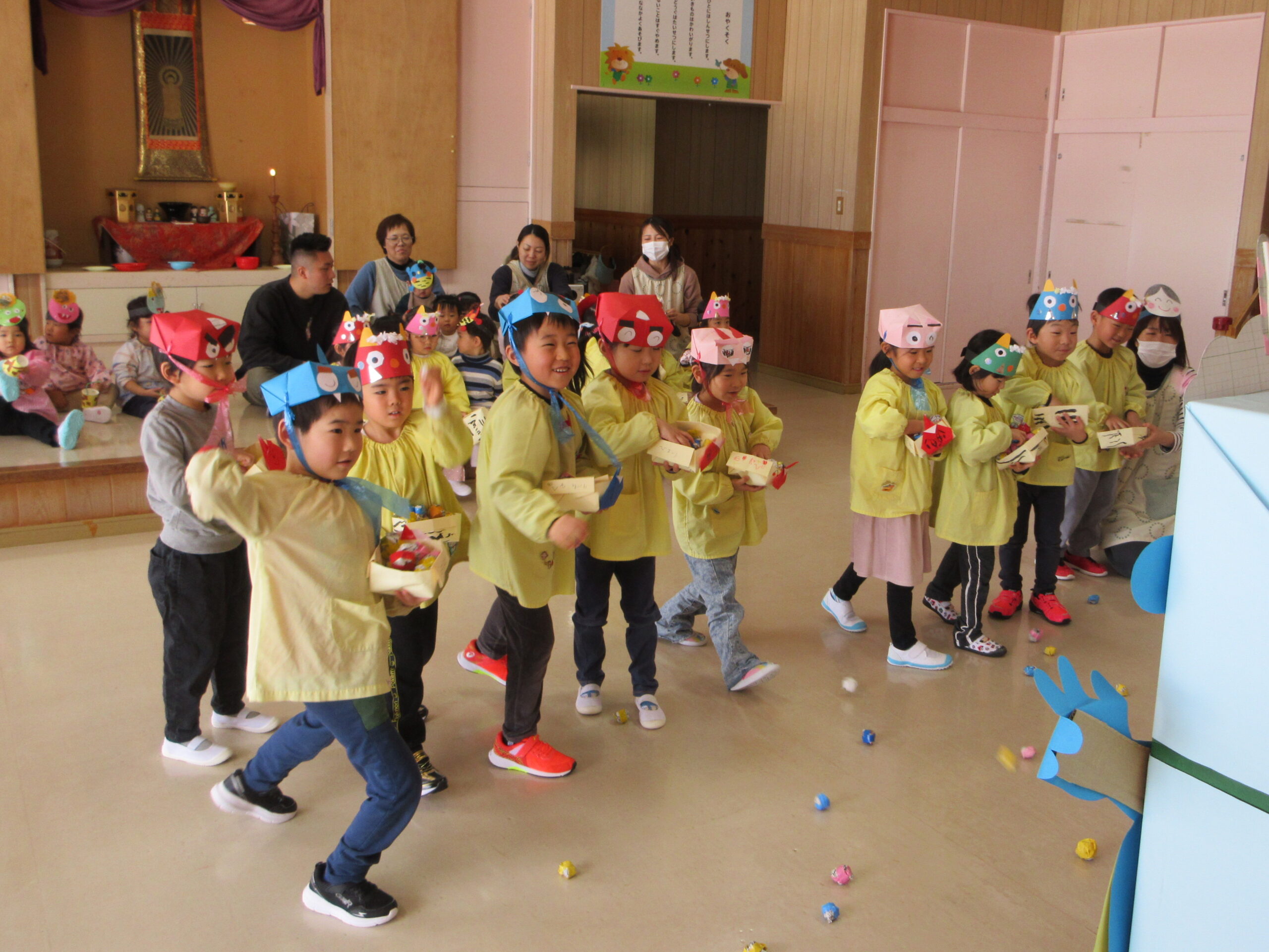 明日は立春。今日は節分です。みんなで豆まきをしました。