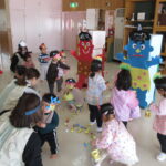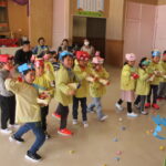 元気に「まめまき♪」の歌を歌い、新聞紙で作った福豆を力いっぱいまいたので、隠れていた鬼たちはこっそり逃げていったことでしょう(#^0^)/~∴∴ ε=ε=↑>w<↑