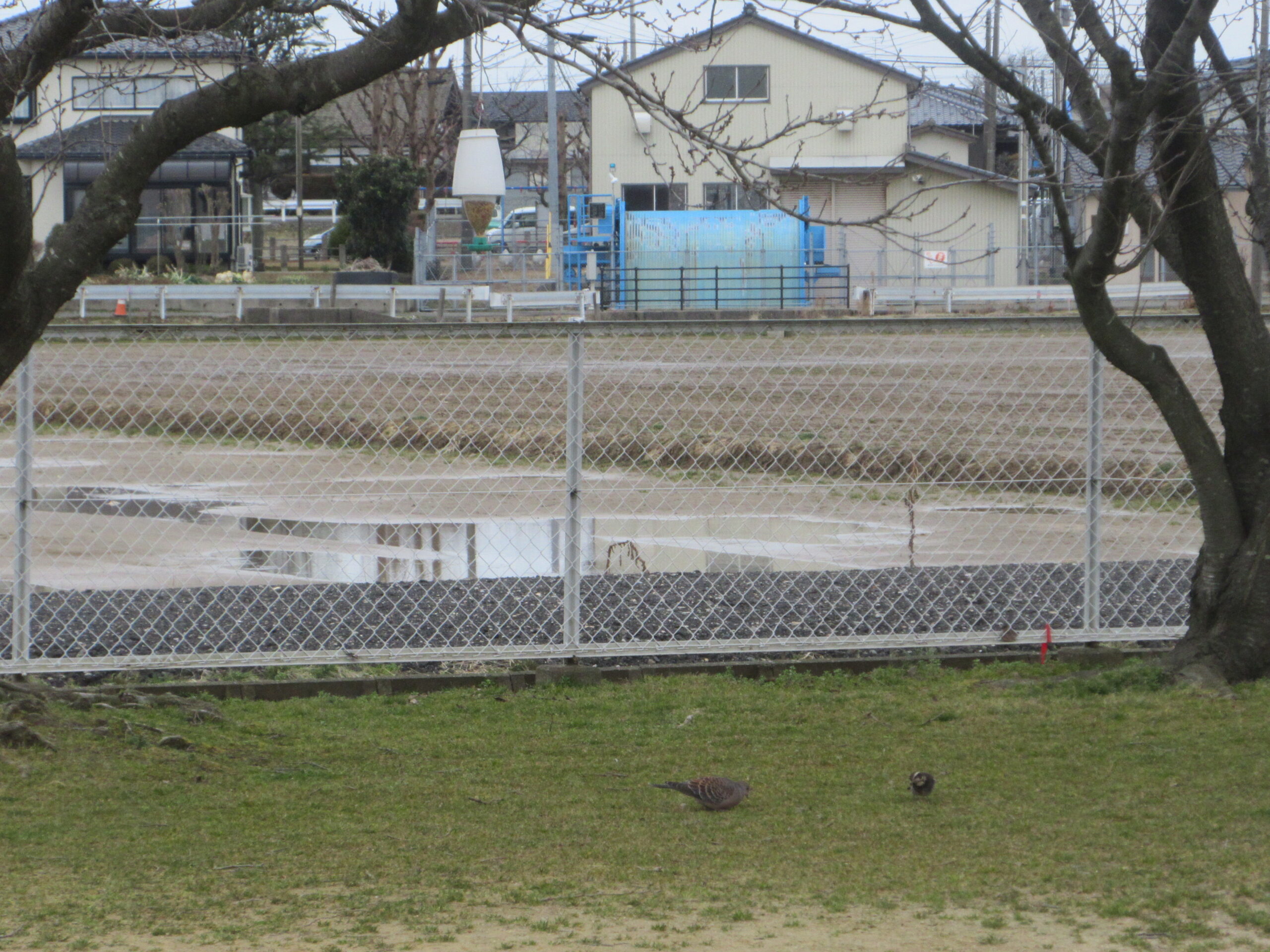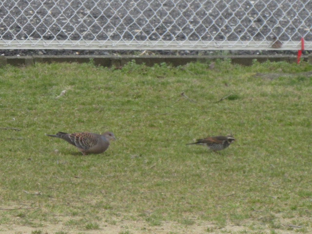 園庭の小鳥のエサ台にツグミとキジバトが来ていました♪
