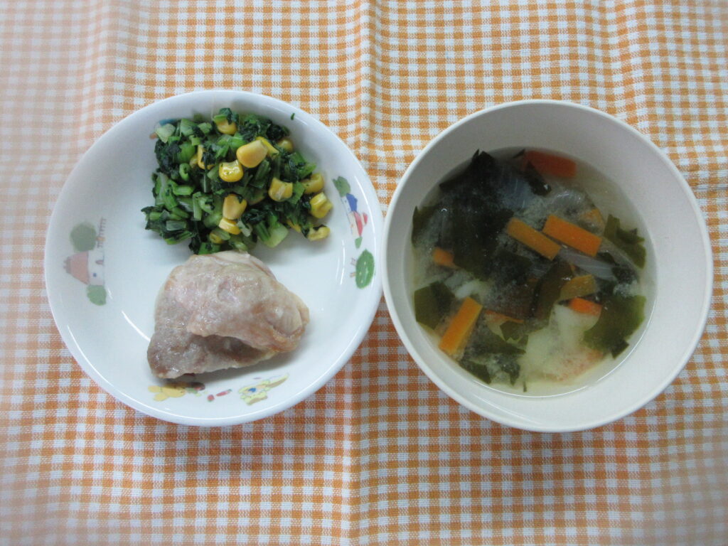 4月27日(月) 鶏肉のオーブン焼き コーン入りおひたし みそ汁