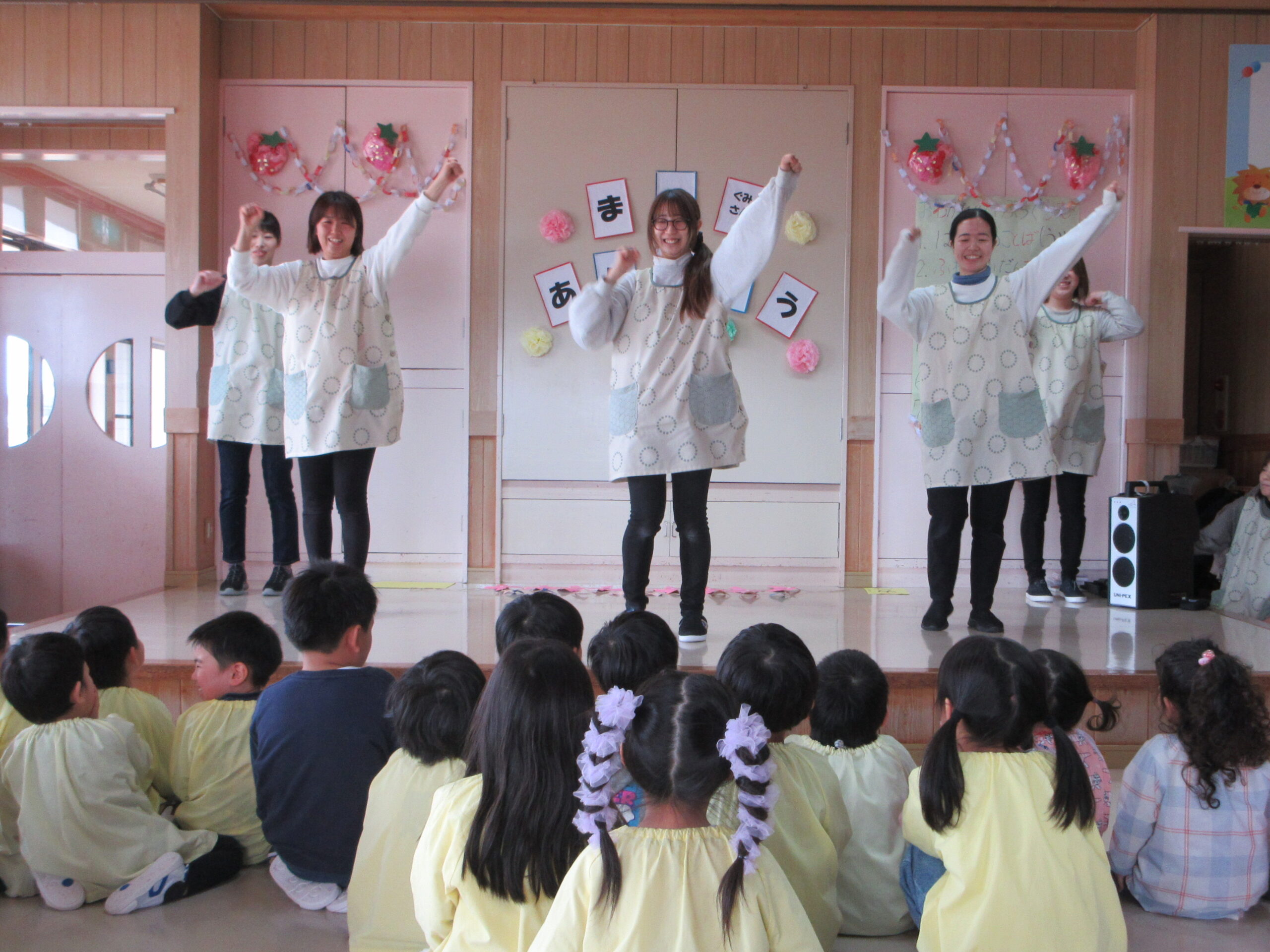 先生方の出し物「ニュー・マイ・ノーマル♪おわかれ会バージョン」はまつ組さん一人ひとりへの素敵なメッセージが込められていました♡