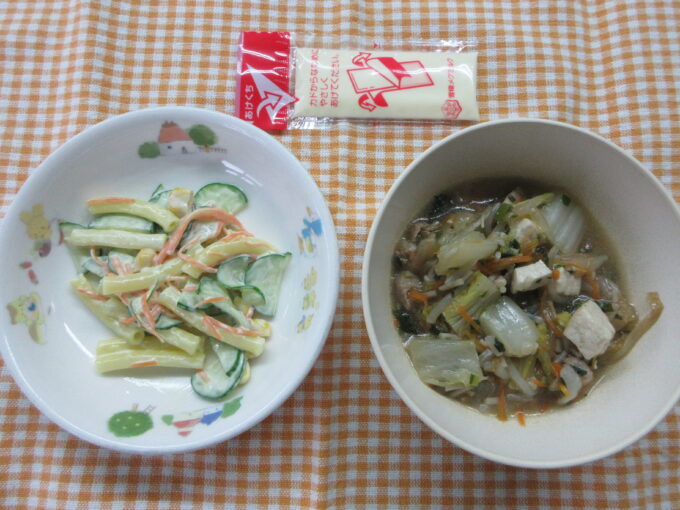 | 豚肉 白菜 人参 玉ねぎ 長ねぎ えのきたけ 小松菜 キュウリ |